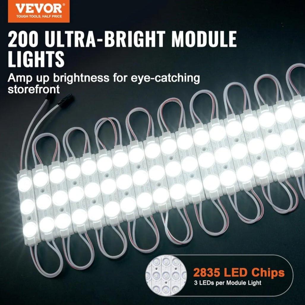 Luces de tienda, luces de módulo LED, 200 piezas 12V 2835 SMD 3-LED luz de ventana con cinta adhesiva trasera para ventana de tienda de negocios, letreros publicitarios, IP68 impermeable